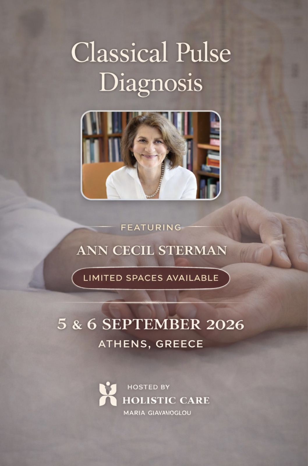 Η Ann Cecil Sterman είναι διεθνώς αναγνωρισμένη εκπαιδεύτρια της Παραδοσιακής Κινέζικης Ιατρικής (TCM), με εξειδίκευση στη Διάγνωση σφυγμού (pulse diagnosis) και στη μεταφορά της γνώσης με τρόπο πρακτικό και άμεσα εφαρμόσιμο στην κλινική πράξη